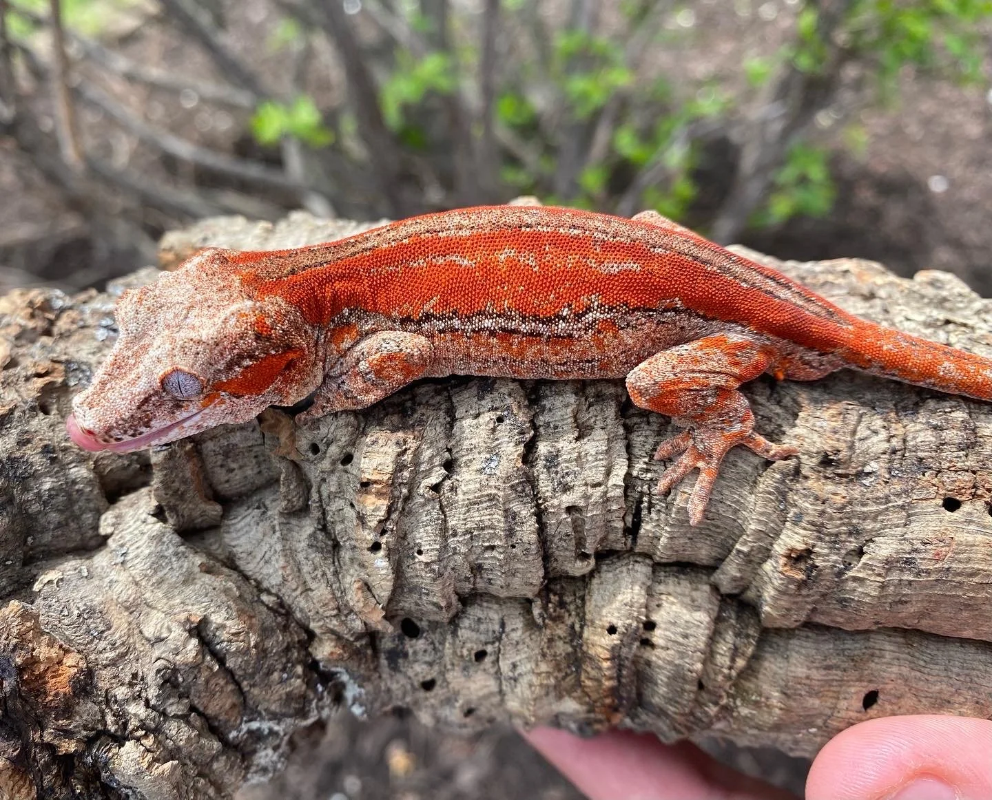 Nice saturated orange and red. Clutchmate to Dexter. Probably the least colorful gargoyle I have seen that hatched out of John’s pair so far (which says a lot if this is the least colorful). I have high hopes for him. Light color on the laterals, wide dorsal stripes. #redrhacAP